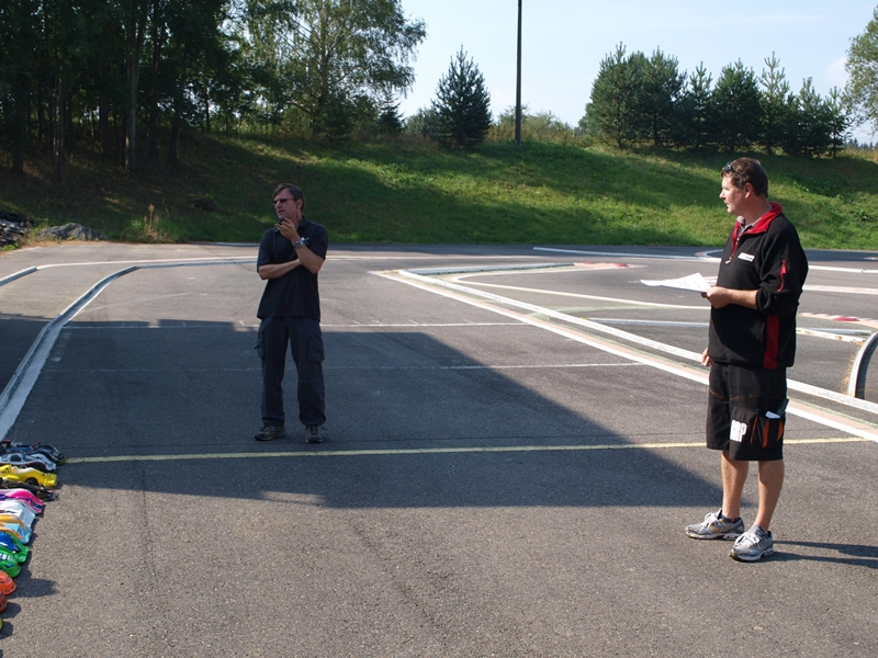 Na poslední závod se kromě pěknýho počasí sešlo i 26 jezdců na startu a nově i 6 nitro osmičkářů, kteří si přijeli volně pozávodit. Rozprava proběhla „jako jakoby ééé“ ve volném stylu, bo moderujicí El Commandante Honza Sonntag byl ještě rozehřátý z pátečního WARM UPu.