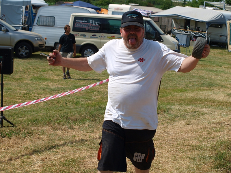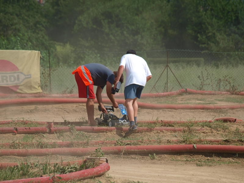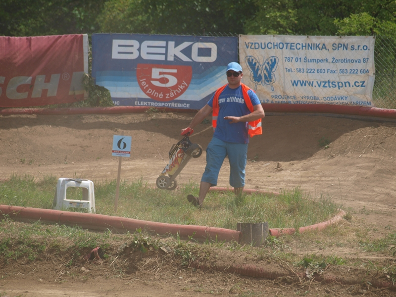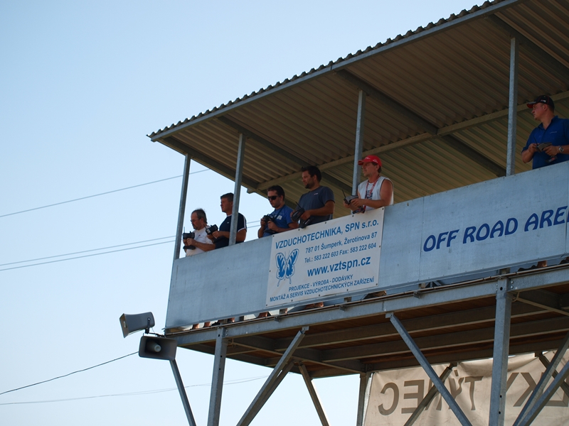 Největším soupeřem po celý víkend horko. Sám sem z toho byl tak blbé, že si pořádně nepamatuju průběh célého závodu. Takže to vezmu jen tak letem světem co mi utkvělo v paměti. Kvalifikace probíhali celkem v poklidu. Od začátku jel velmi dobře Andrej Alman, který také zajel best lap sobotního dne. První kdo hlásil ztráty, byl Franta Hubáček. Na konci cílovky zůstal trochu viset ve smyku a z boku, také ve smyku, do něj vlétl Libor Pikal (v odborných kruzích také nazýván kovadlina 🙂 ) . Výsledkem bylo upálené servo řízení a posunutá pravá přední náprava.
