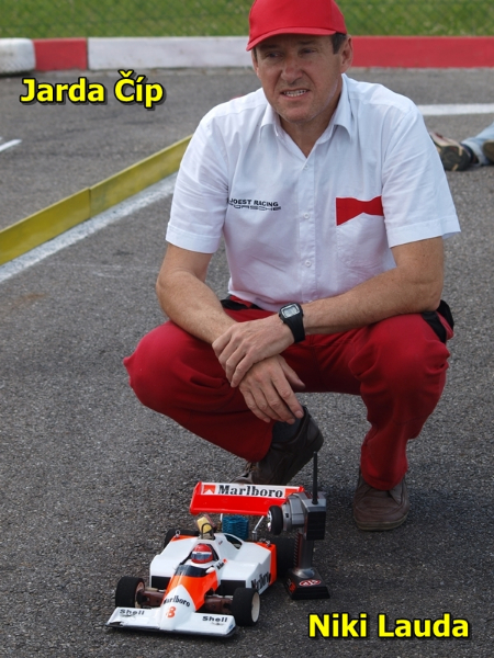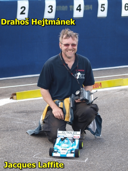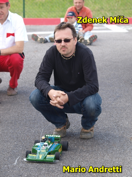 Podle očekávaní do předu vystřelil Ligier Drahoše Hejtmánka a začal sekat jedno kolo za druhým, ale už ve druhé minutě se mu odporoučel do věčných lovišť diferenciál a tak Laffite musel zajet do boxů a závod pro něj skončil. Na první místo se dostal Standa Čech, ale v šesté minutě také musel odstoupit, protože se mu opět povolil setrvačník a také unašeč špůru. Standa se tak stal jednozačně smolařem víkendu. To už byl také mimo hru Denny Hulme, který měl tuším že problémy s motorem a objevil se na trati pouze na dvě kola. První místo chvíli okupoval Jackie Ickx, ale ten musel také těsně před polovinou závodu odstoupit pro poruchu motoru. Na trati tak zůstali pouze tři modely, tři neodpružené podvozky s motorem MVVS. Naprosto čistá veteránská práce. Ve vedení byl s náskokem několika kol Lotus Maria Andrettiho a Zdeňka Míči. Za ním pečlivě kroužil James Hunt, u kterého se střídali v řízení Petr Blaha a Hanz Pekárek. Kluci jeli tak ébez problém, jen jim v průběhu závodu upadl maketový komín na Jamesově Heskethu. Ze třetího místa mocně dotahoval Niki Lauda Jardy Čípa. Jarda se také potýkal s problémy své MVVSky, ale nakonec stíhací jízdou stihl dostat Laudu před Hunta, ale na Andrettiho už neměl. Zdeněk Míča tak oslavil pomalým průjezdem cílovou rovinkou, ve které mu akorát došel benzín, historicky první vítězství veteránské F1 Grand Prix. Jako divák jsem si při závodu užil hodně srandy, navíc s parádním komentářem od časoměřiče Slávy Spielvogela to nemělo chybu.